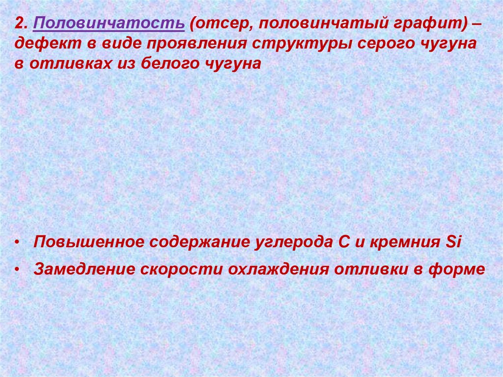 2. Половинчатость (отсер, половинчатый графит) –дефект в виде проявления структуры серого чугуна