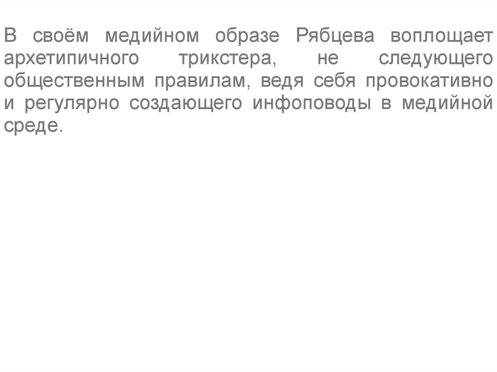 Провокативность образа Рябцевой нарушаетне только общественные нормы и морали,
