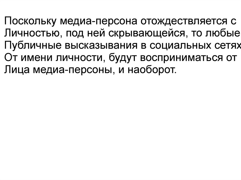 Поскольку медиа-персона отождествляется сЛичностью, под ней скрывающейся, то любые