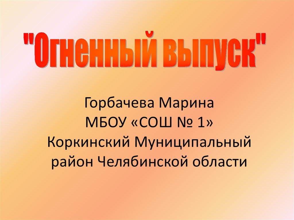 1. Горбачева Марина МБОУ «СОШ № 1» Коркинский Муниципальный район Челябинской области