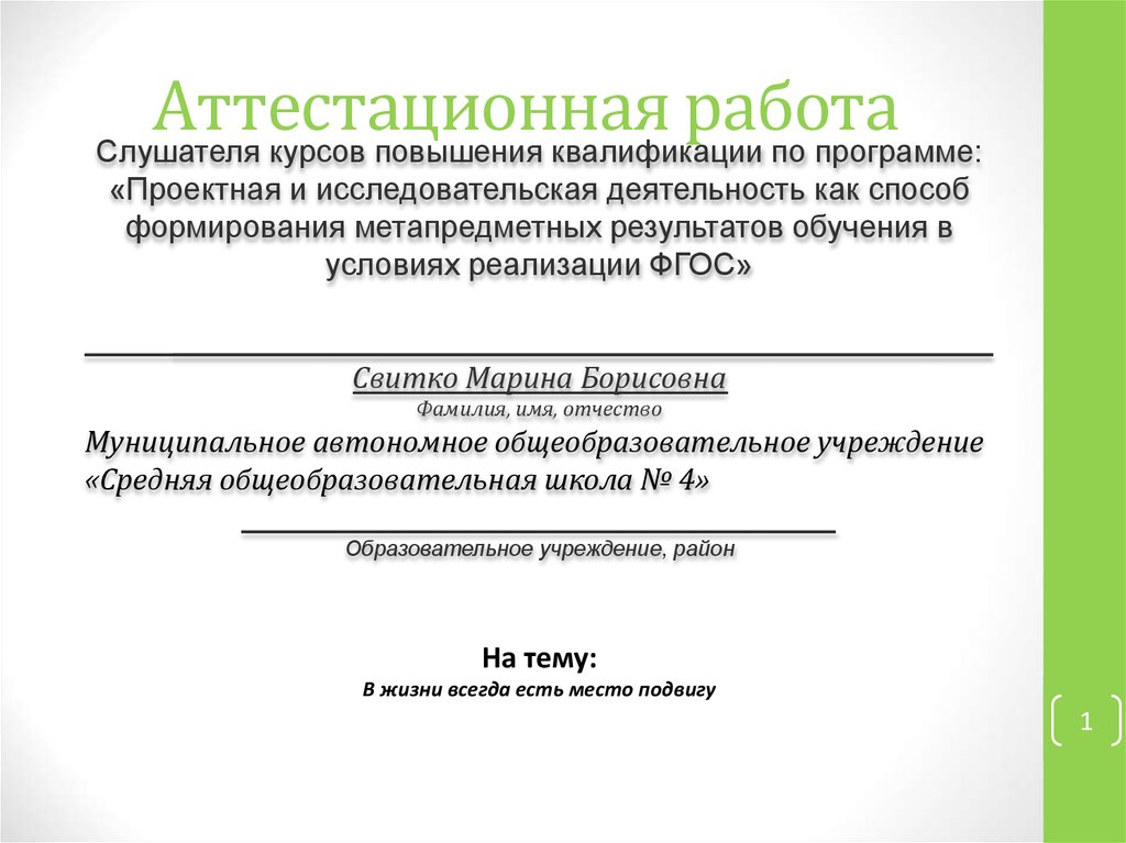 Слушателя курсов повышения квалификации по программе:«Проектная и исследовательская деятельность как способ