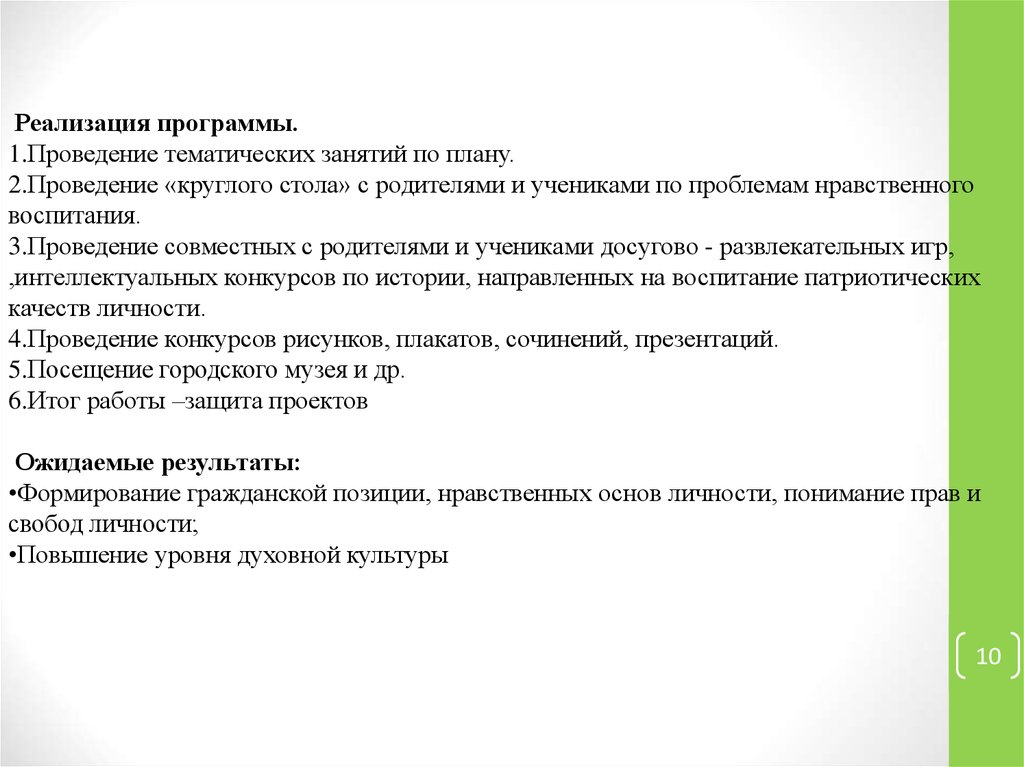 • Целью программы является формирование у обучающихсягражданской ответственности за судьбу страны, чувства сопричастности