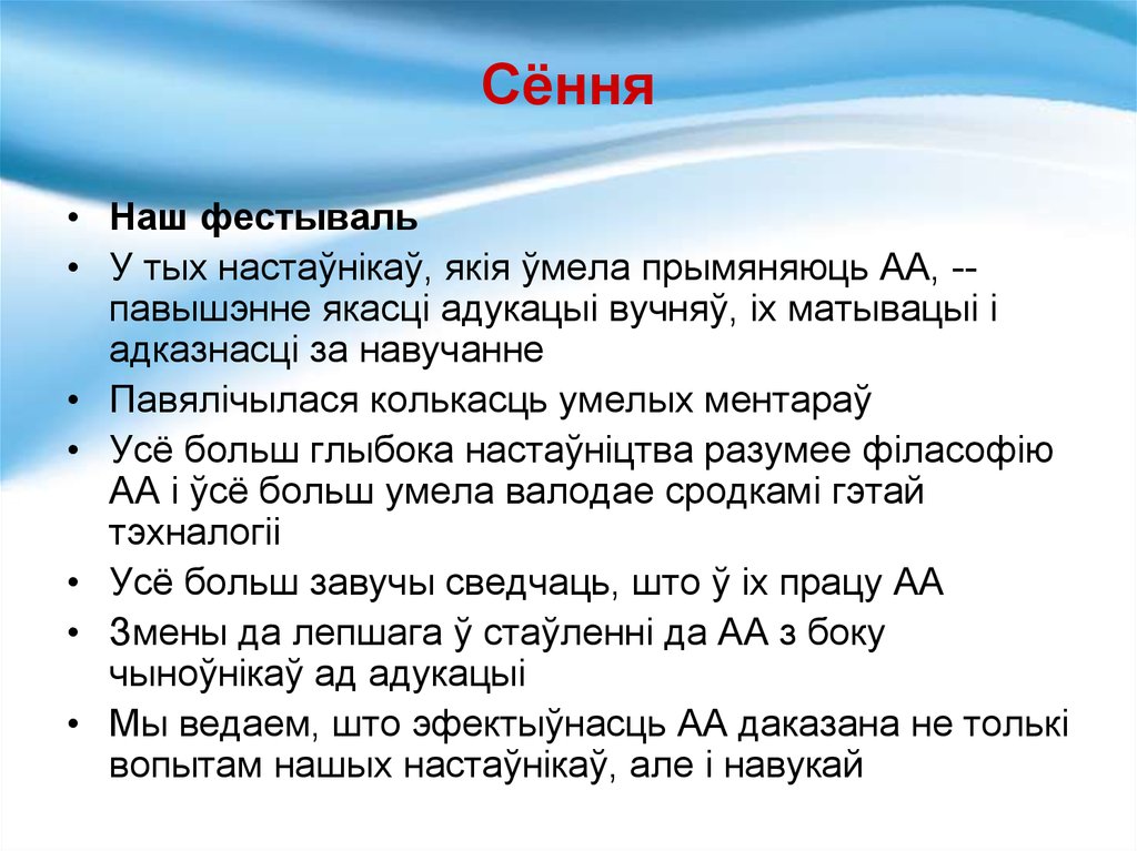 • У тых настаўнікаў, якія ўмела прымяняюць АА, -павышэнне якасці адукацыі вучняў, іх матывацыі і
