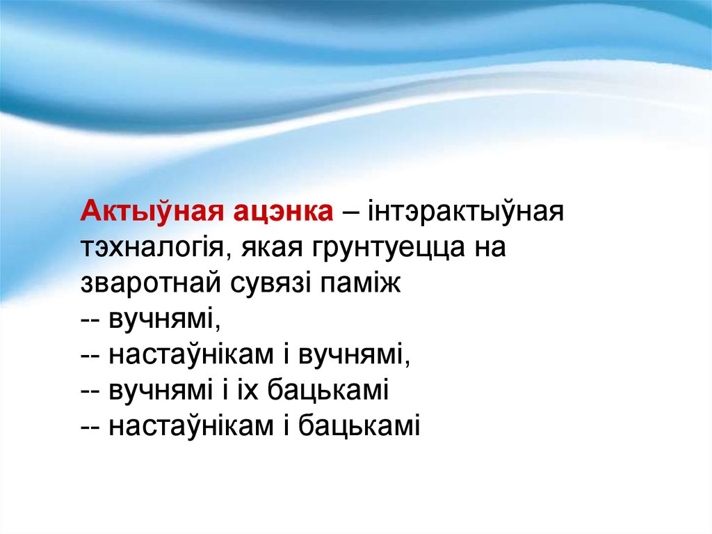 Актыўная ацэнка – інтэрактыўнаятэхналогія, якая грунтуецца на