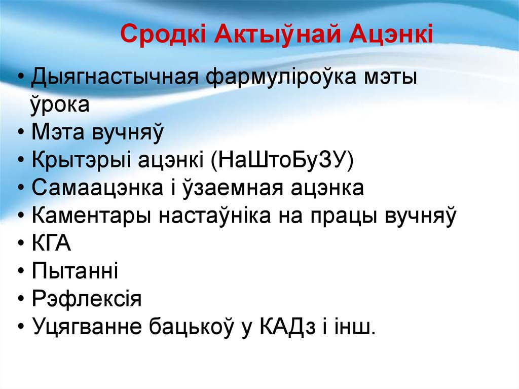 Сродкі Актыўнай Ацэнкі• Дыягнастычная фармуліроўка мэты