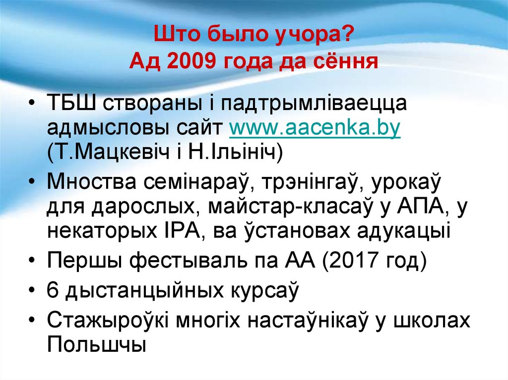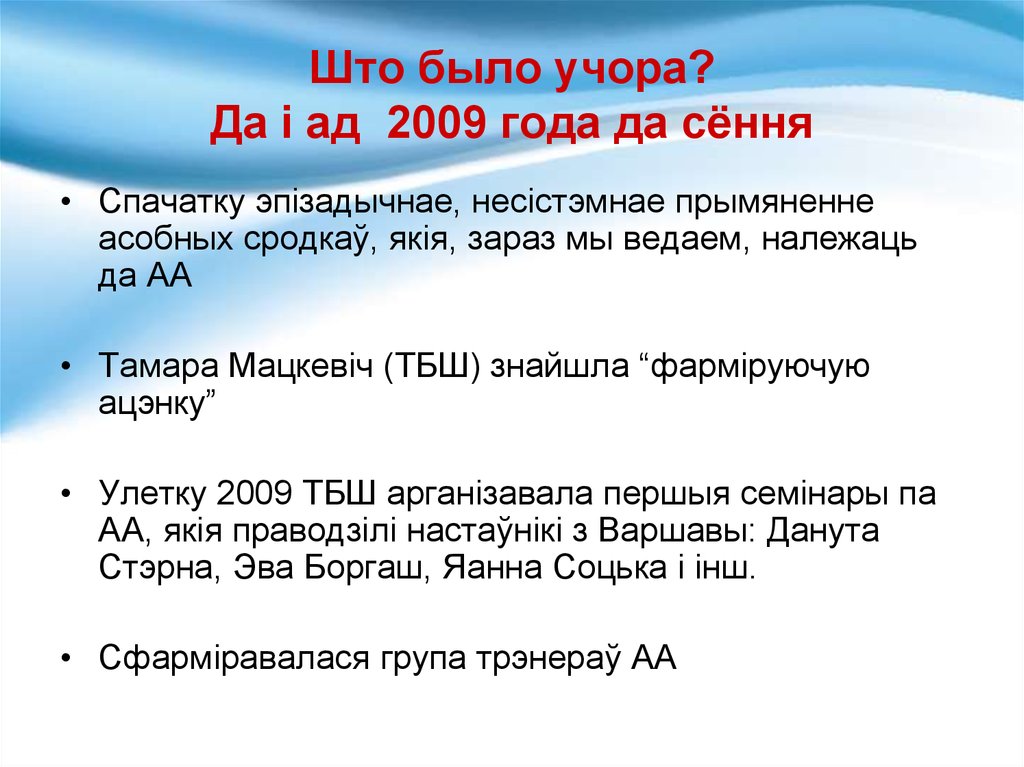 Што было учора?Да і ад 2009 года да сёння
