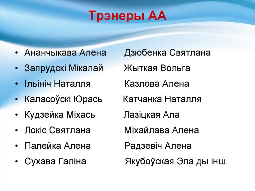 Трэнеры АА• Ананчыкава Алена