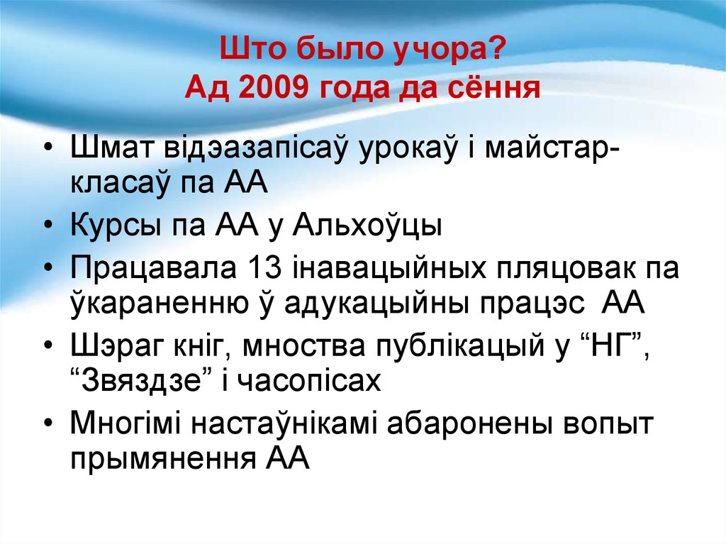ўкараненню ў адукацыйны працэс АА