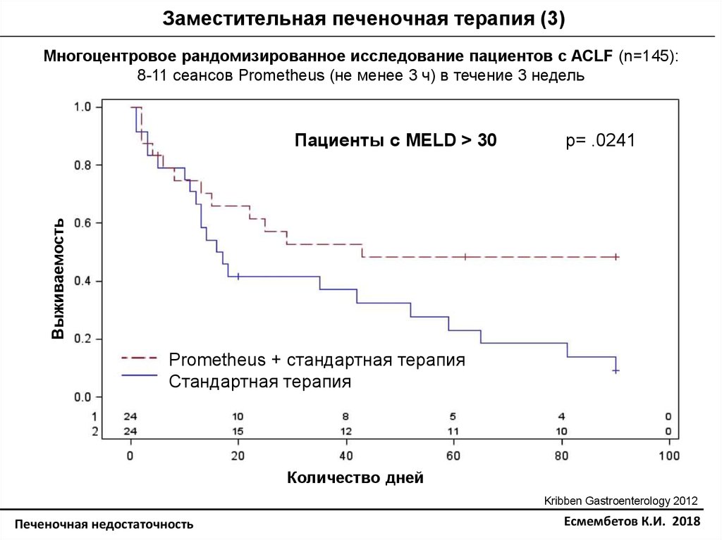 Заместительная печеночная терапия (3)Многоцентровое рандомизированное исследование пациентов с ACLF (n=145):