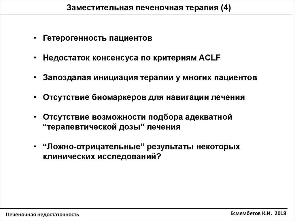 Заместительная печеночная терапия (4)• Гетерогенность пациентов