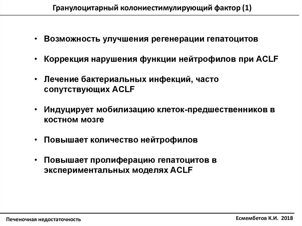 Гранулоцитарный колониестимулирующий фактор (1)• Возможность улучшения регенерации гепатоцитов