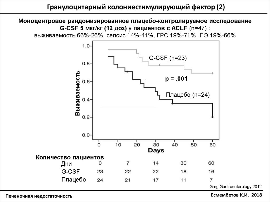 G-CSF 5 мкг/кг (12 доз) у пациентов с ACLF (n=47) :