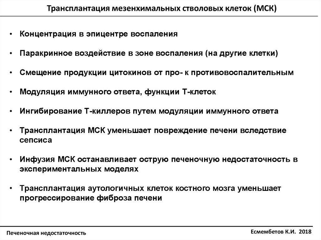 • Трансплантация МСК уменьшает повреждение печени вследствие