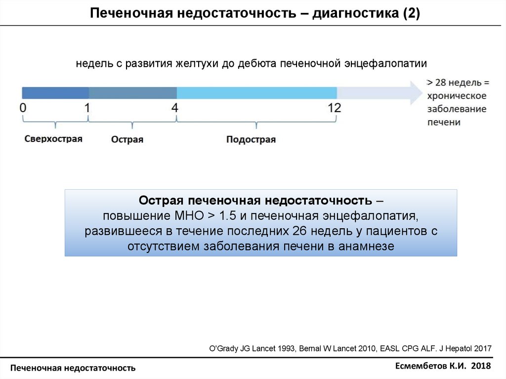 Печеночная недостаточность – диагностика (2)недель с развития желтухи до дебюта печеночной энцефалопатии