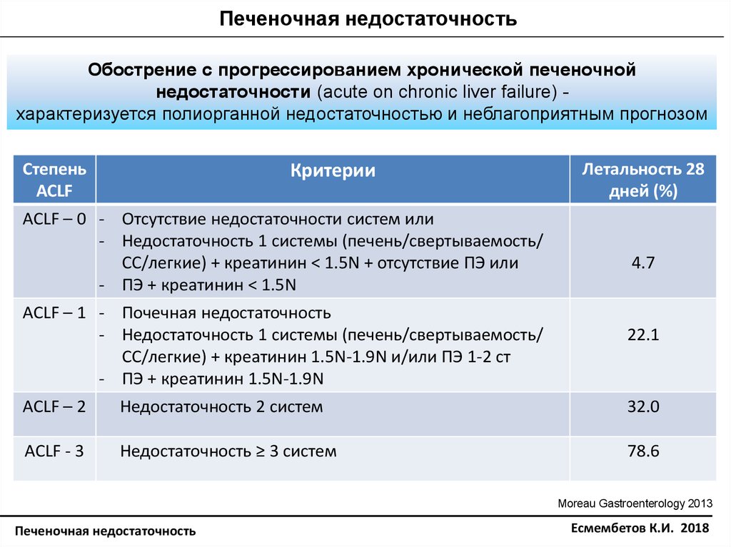 недостаточности (acute on chronic liver failure) характеризуется полиорганной недостаточностью и неблагоприятным прогнозом