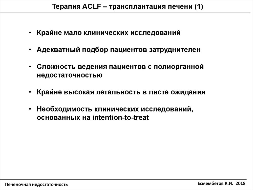 • Недостаток консенсуса по критериям ACLF