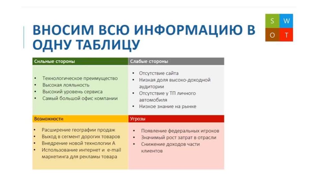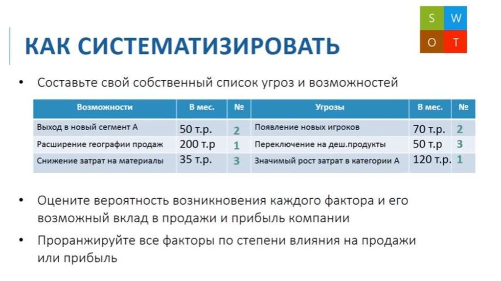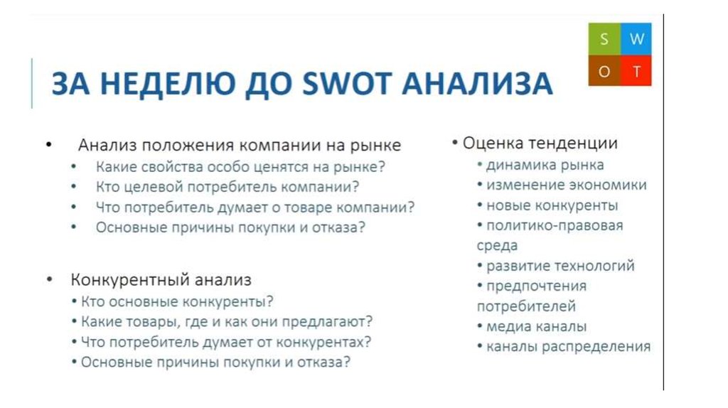 Задачи и объекты SWOT-анализа