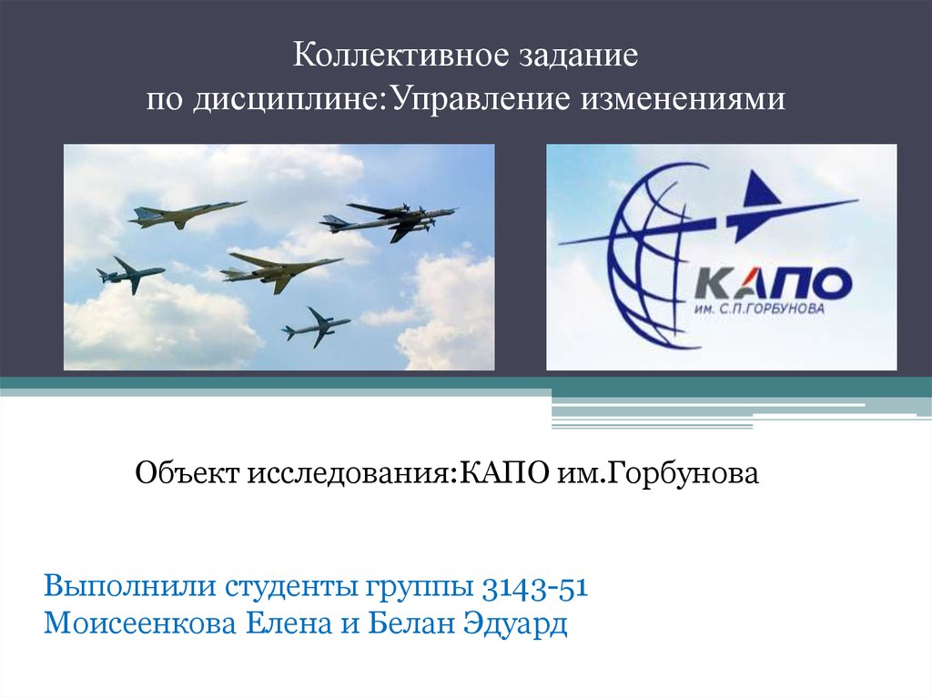Объект исследования:КАПО им.ГорбуноваВыполнили студенты группы 3143-51