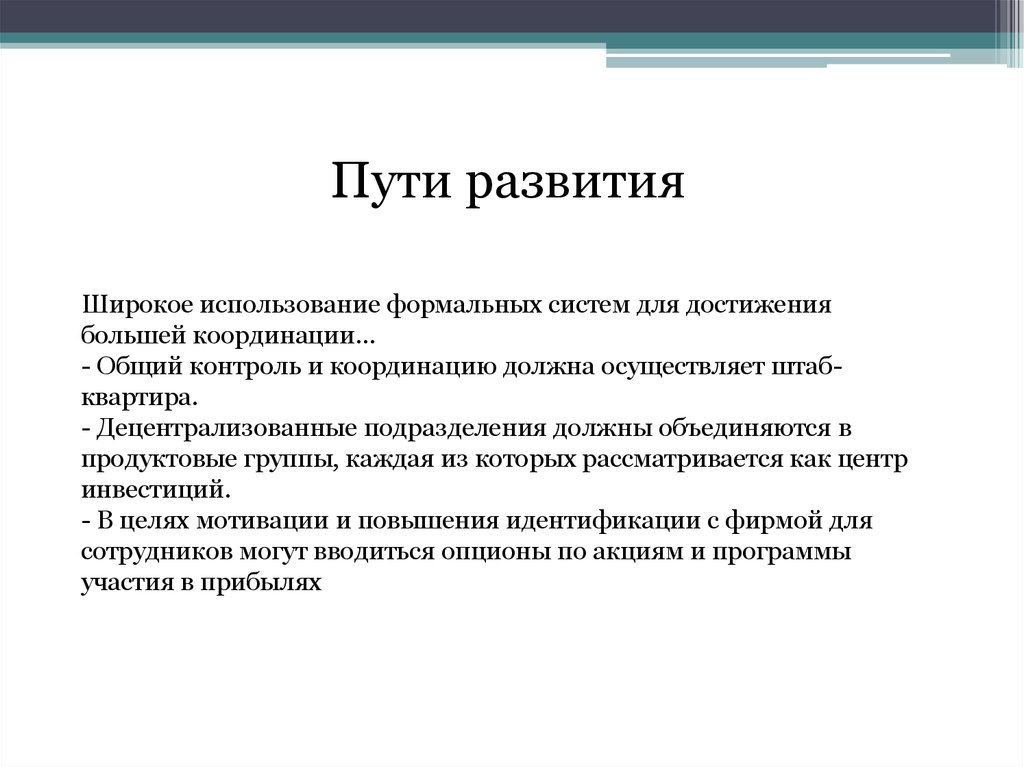 Координация-Возникает дефицит доверия между штаб-квартирой и дивизионами, а