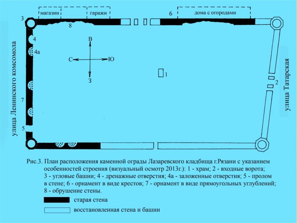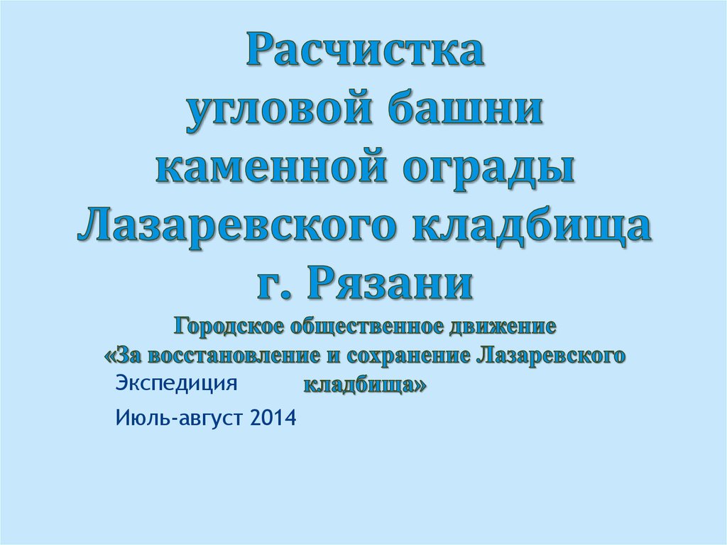 1. Расчистка угловой башни каменной ограды Лазаревского кладбища г. Рязани Городское общественное движение «За восстановление и