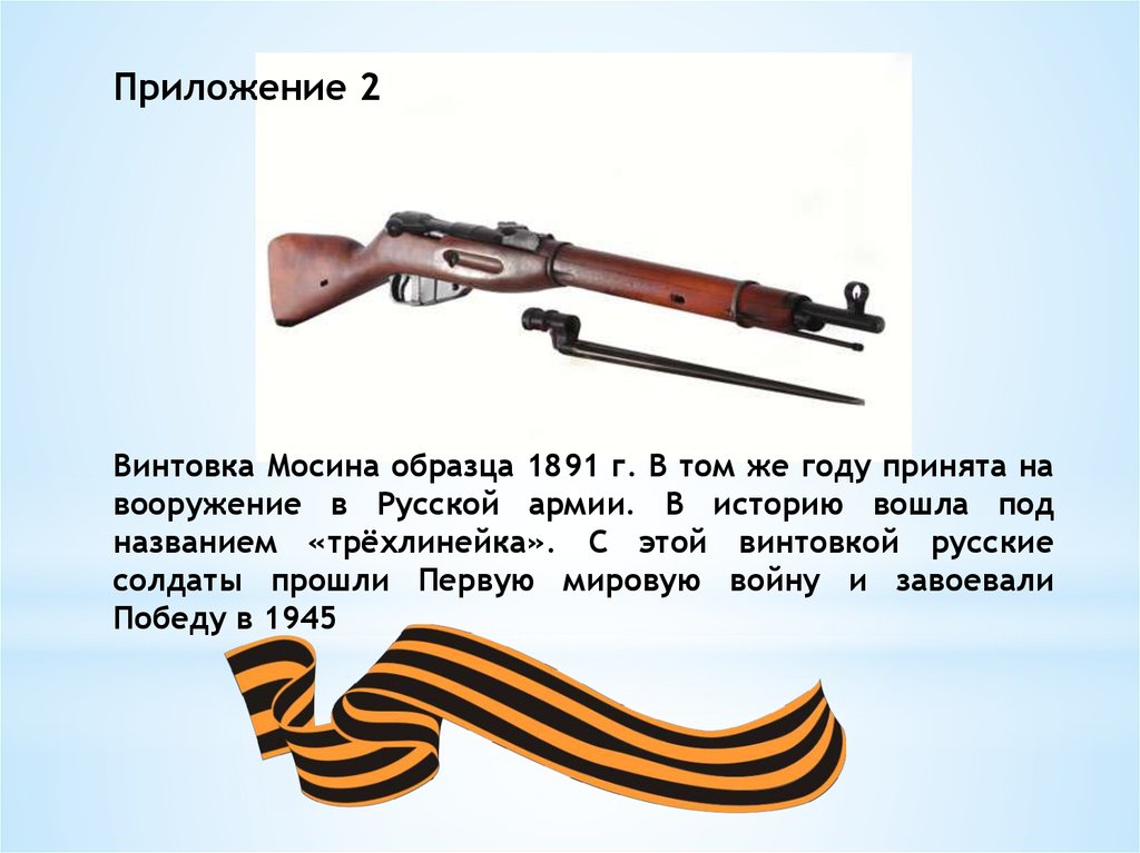 Приложение 2Винтовка Мосина образца 1891 г. В том же году принята на