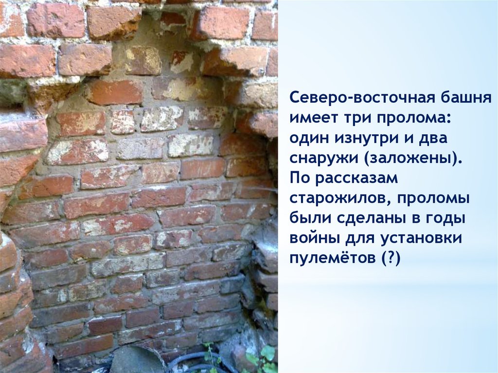 Северо-восточная башняимеет три пролома: