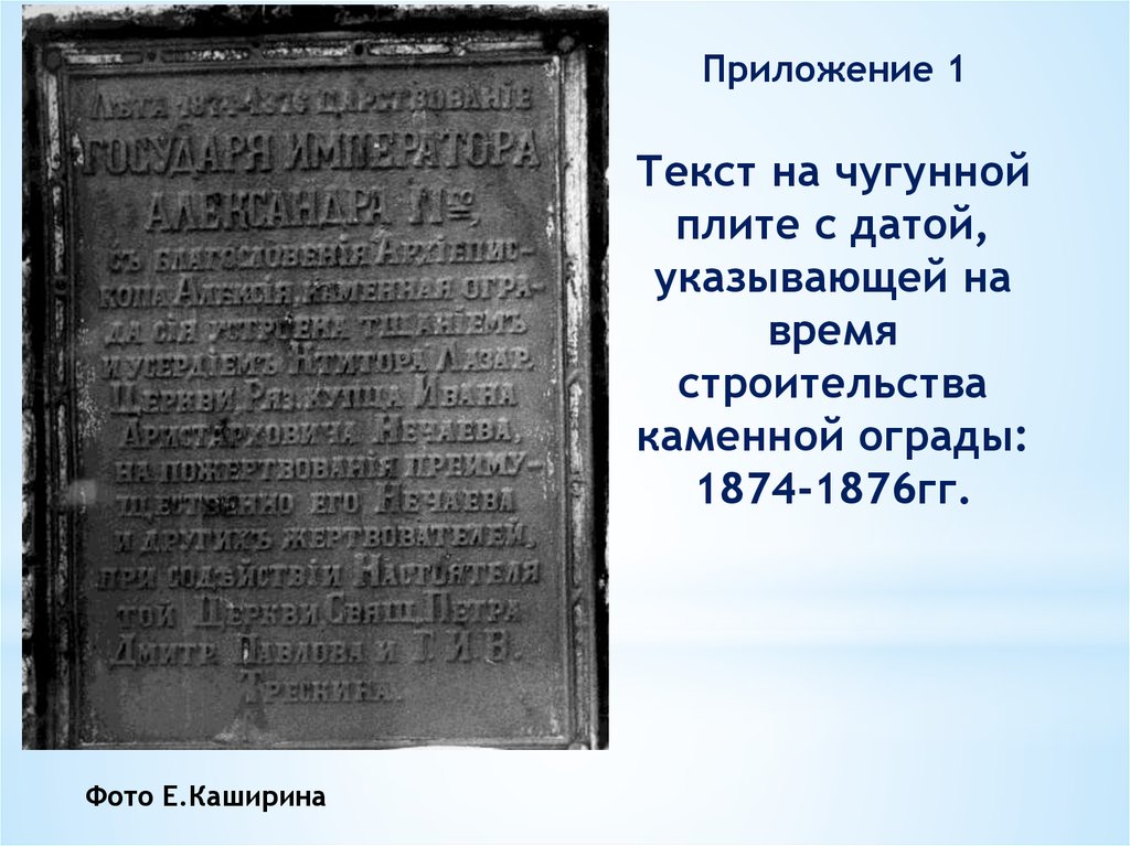 Приложение 1Текст на чугунной