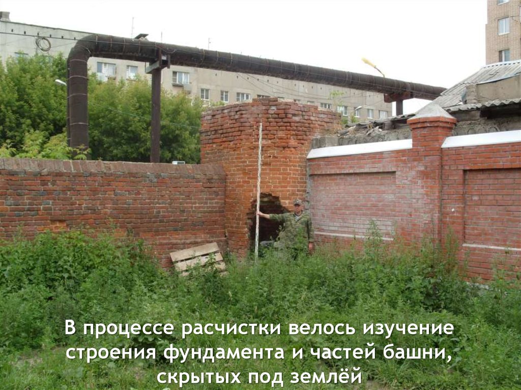 В процессе расчистки велось изучениестроения фундамента и частей башни,