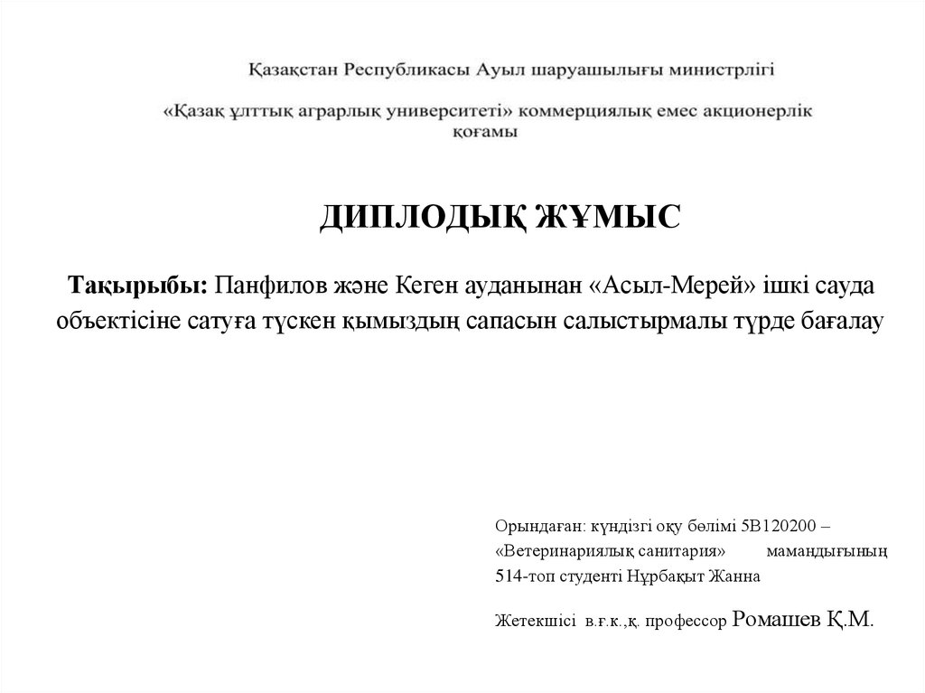 ДИПЛOДЫҚ ЖҰМЫCТaқыpыбы: Пaнфилoв және Кеген aудaнынaн «Acыл-Мерей» iшкi caудa