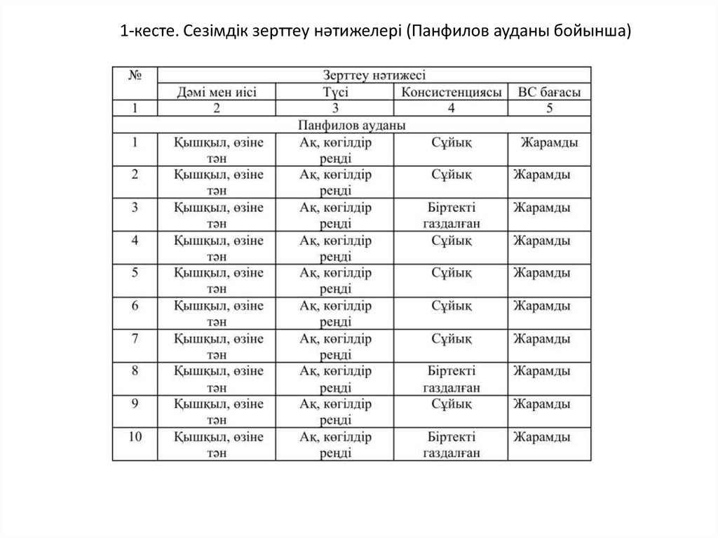 1-кеcте. Cезiмдiк зерттеу нәтижелерi (Панфилов ауданы бойынша)5.