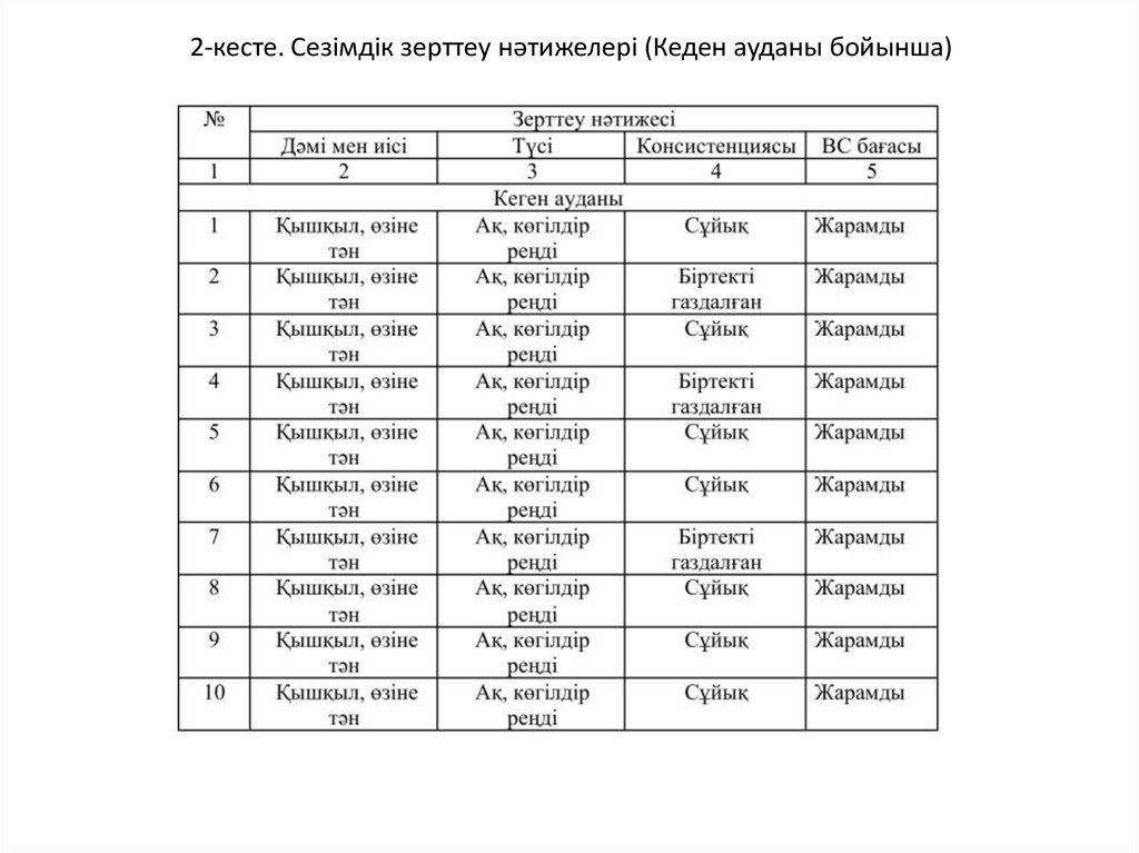 2-кеcте. Cезiмдiк зерттеу нәтижелерi (Кеден ауданы бойынша)7.