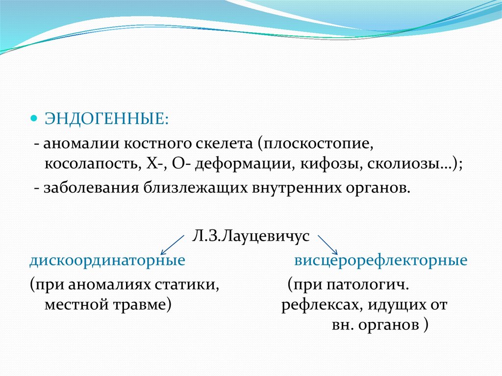 ЭНДОГЕННЫЕ:- аномалии костного скелета (плоскостопие,