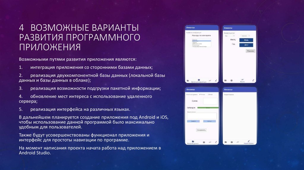 4 ВОЗМОЖНЫЕ ВАРИАНТЫРАЗВИТИЯ ПРОГРАММНОГО