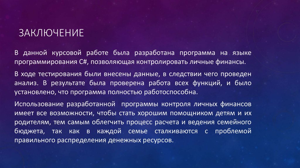 ЗАКЛЮЧЕНИЕВ данной курсовой работе была разработана программа на языке