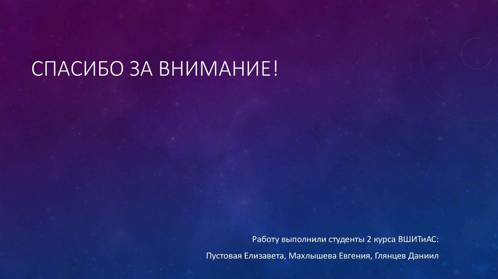 СПАСИБО ЗА ВНИМАНИЕ!Работу выполнили студенты 2 курса ВШИТиАС: