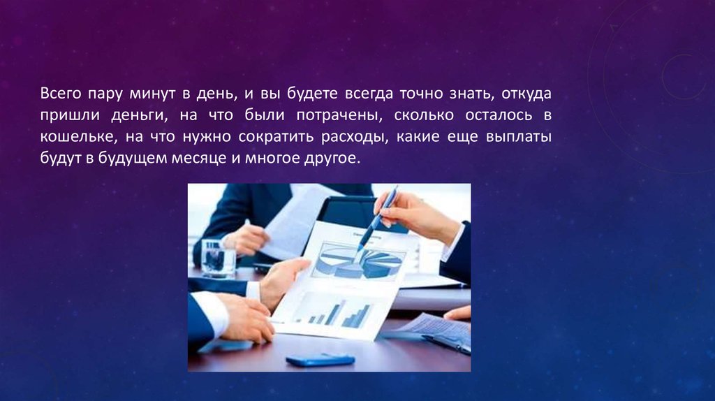 Всего пару минут в день, и вы будете всегда точно знать, откудапришли деньги, на что были потрачены, сколько осталось в