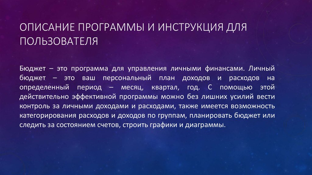 ОПИСАНИЕ ПРОГРАММЫ И ИНСТРУКЦИЯ ДЛЯПОЛЬЗОВАТЕЛЯ