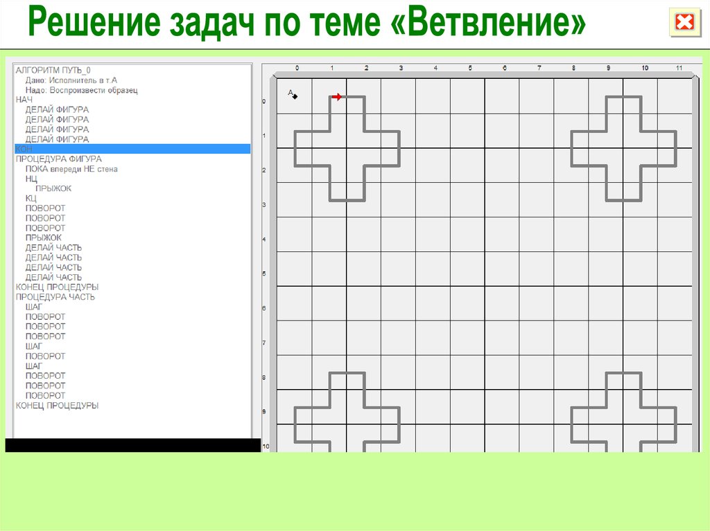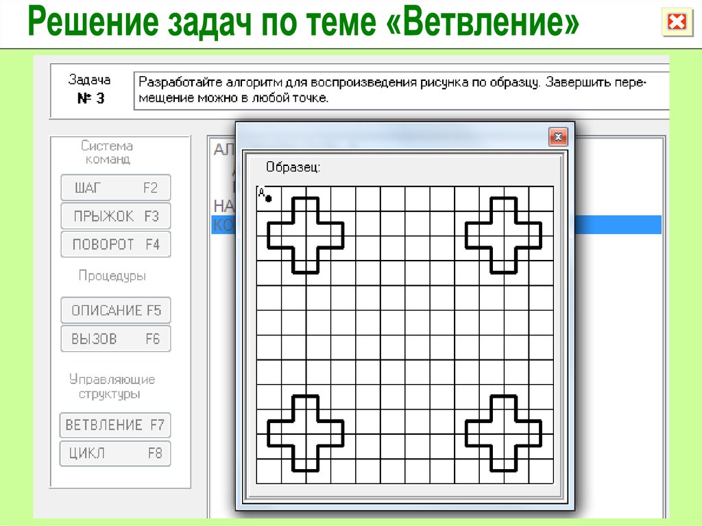 Задача № 1. Разработать алгоритм перемещения из точки А в точку Б срисованием следа. Заранее не известно расстояние от А до Б, но точно