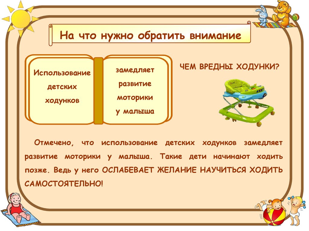 Отмечено, что использование детских ходунков замедляет