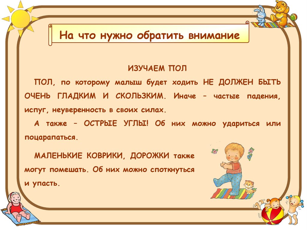 ПОЛ, по которому малыш будет ходить НЕ ДОЛЖЕН БЫТЬ