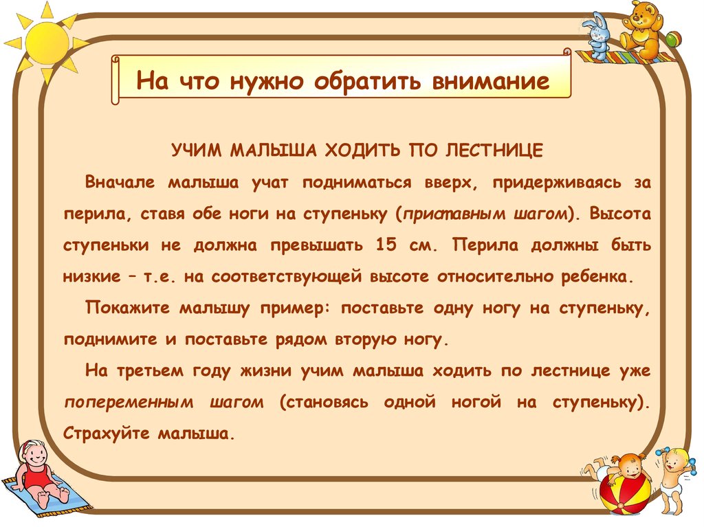 На что нужно обратить вниманиеУЧИМ МАЛЫША ХОДИТЬ ПО ЛЕСТНИЦЕ