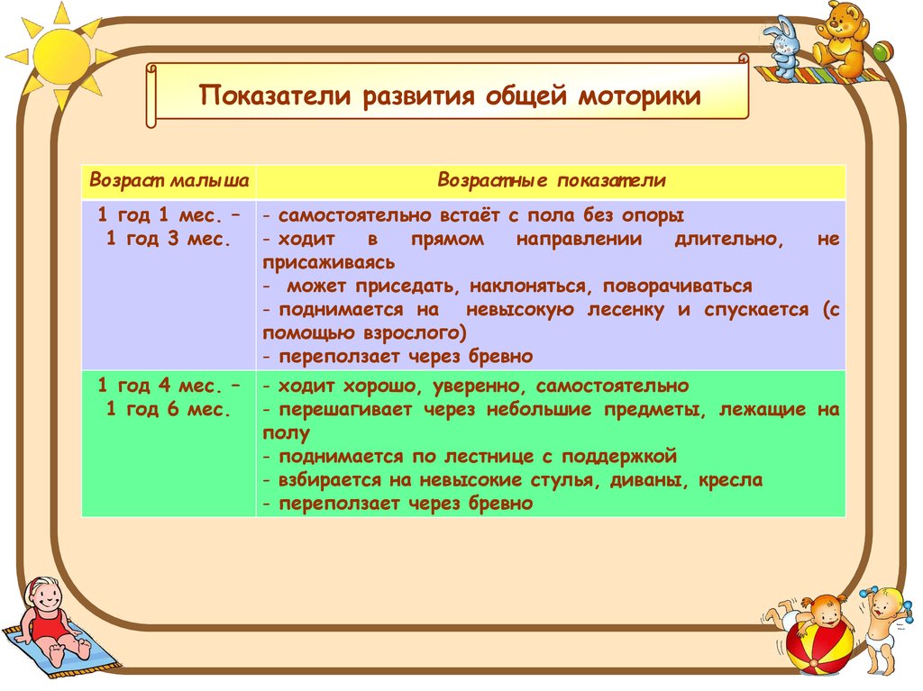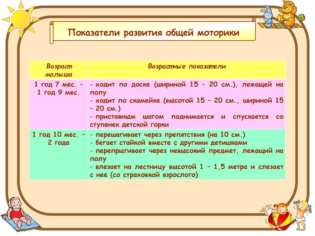 Показатели развития общей моторики малыша