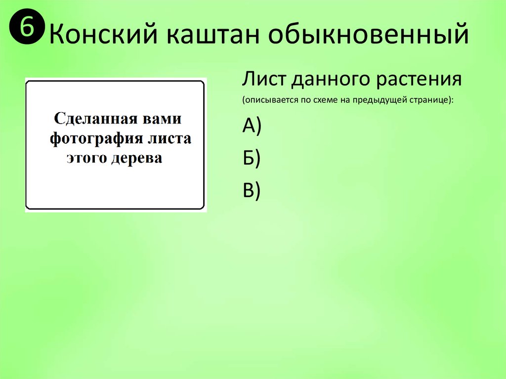 ❶Конский каштан обыкновенныйЛист данного растения