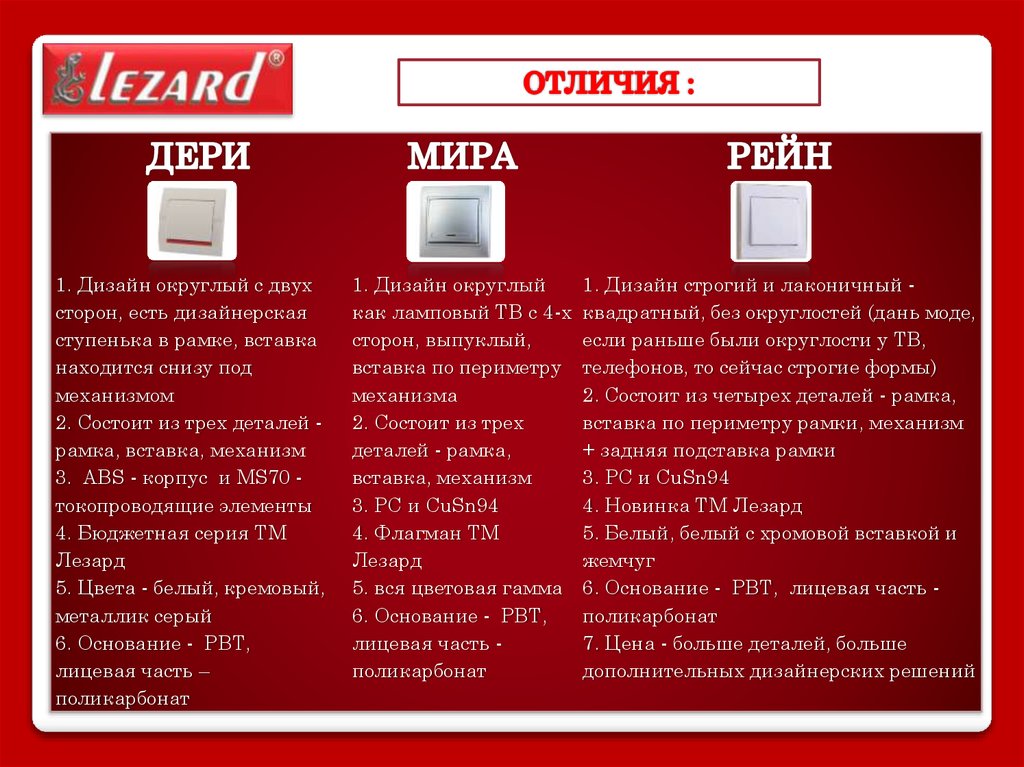 Lezard. Электрика (розетки, выключатели)