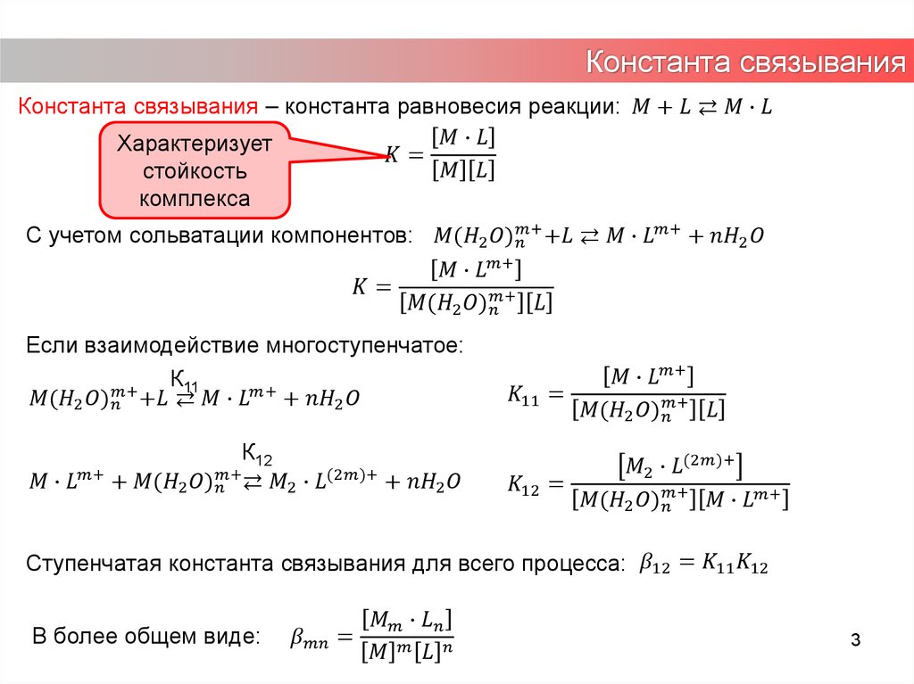Константа связыванияКонстанта связывания – константа равновесия реакции: