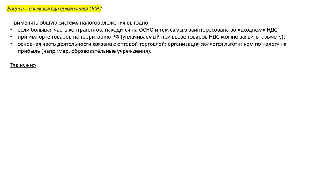 Вопрос – в чем выгода применения ОСН?9.