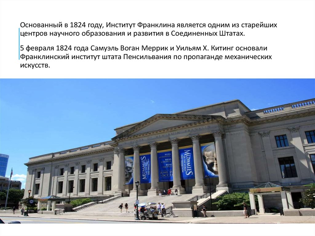 Основанный в 1824 году, Институт Франклина является одним из старейшихцентров научного образования и развития в Соединенных Штатах.