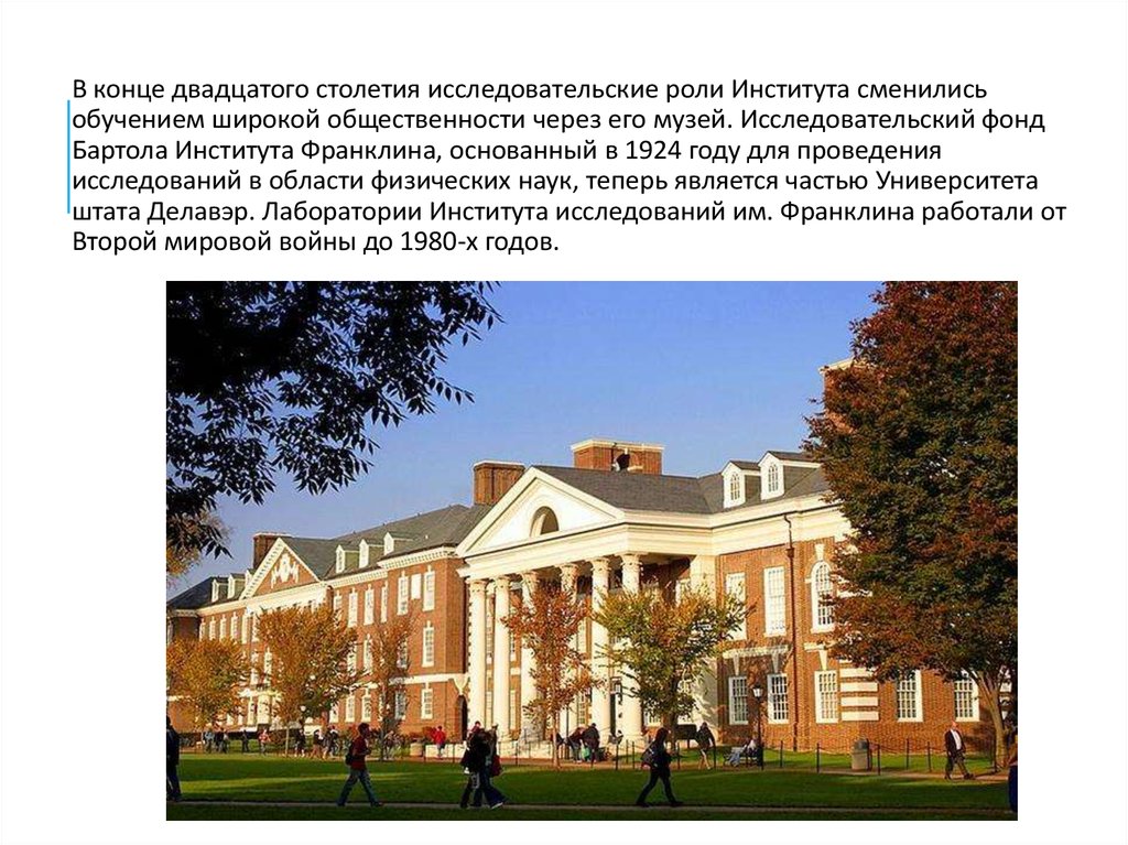 штата Делавэр. Лаборатории Института исследований им. Франклина работали от