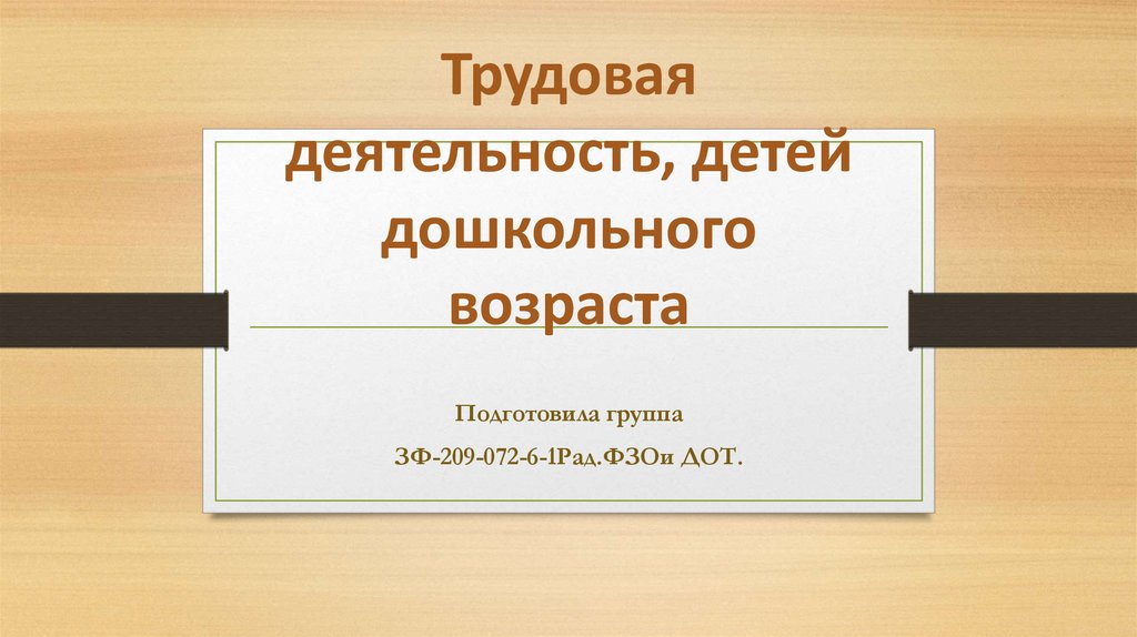 1. Трудовая деятельность, детей дошкольного возраста
