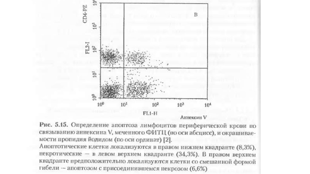 • Принцип: определение экспрессии фосфатидилсерина,появляющегося на поверхности клетки вследствие нарушения